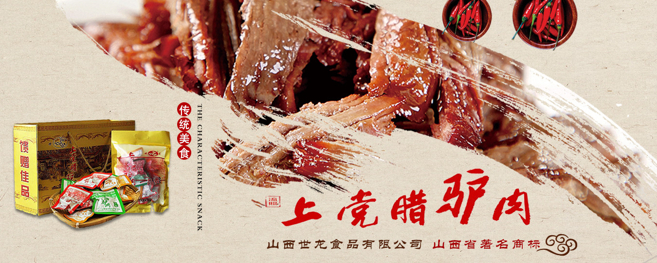 山西世龍食品有限公司是以“世龍”牌上黨臘驢肉系列產(chǎn)品為主導(dǎo),集科研開發(fā)、良種繁育、基地建設(shè)、生產(chǎn)加工、市場營銷于一體的農(nóng)業(yè)產(chǎn)業(yè)化國家重點龍頭企業(yè)、全國農(nóng)業(yè)標準化示范區(qū)、全國食品行業(yè)優(yōu)秀龍頭企業(yè)、山西省農(nóng)業(yè)產(chǎn)業(yè)化重點龍頭企業(yè)、山西省農(nóng)產(chǎn)品加工“513”工程單位、山西省帶動貧困地區(qū)基地建設(shè)重點龍頭企業(yè)、山西省民營畜牧業(yè)示范基地、山西省質(zhì)量信譽AAA級單位、山西省重合同守信用單位、山西省消費者協(xié)會誠信單位、山西省民營科技企業(yè)。